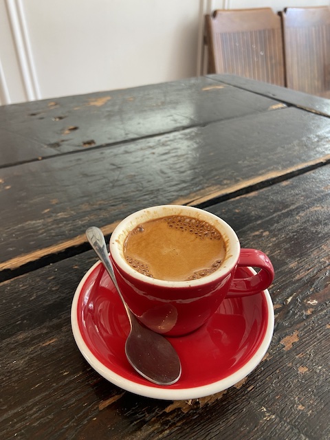 Also, a coffee shop always gets bonus points if it puts some intention into the presentation of espresso. The red ceramic cup, saucer, and demitasse spoon I received were all nice touches.