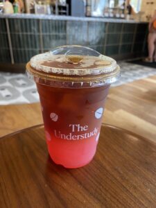 But The Understudy’s menu doesn’t stop at the basics. In addition to its coffee, the shop offers a variety of teas from Spirit Tea. They also rotate through seasonal specials, which they name after popular plays and musicals. Going off of the barista’s recommendation, I tried one of their summer specials, the “Hunter’s Fabulous Adventure.” This was a half-cold brew, half-lemonade concoction, sweetened with a blackberry cordial syrup. I am a huge fan of cold brew shandys, especially as a summer drink. (Don’t knock it ’til you try it!) This one was delightful, a wonderfully balanced mix of tangy acidity and nutty depth. The blackberry gave the whole drink an extra pop of sweetness.