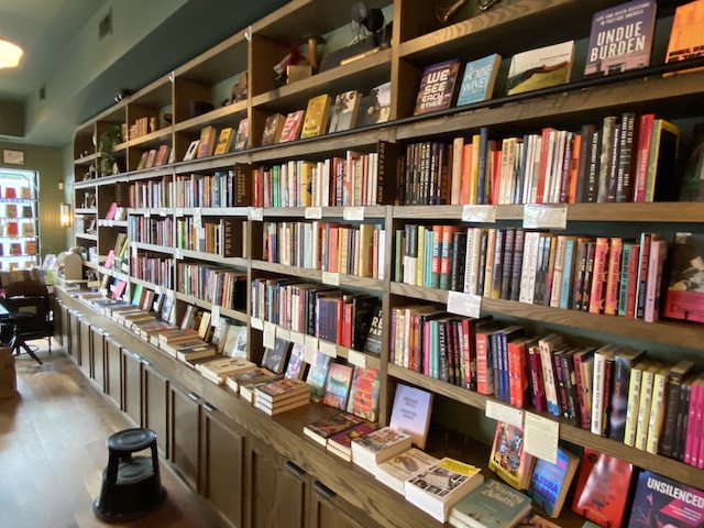 Opposite the play wall are shelves consisting of a mix of fiction and non-fiction, with a smattering of poetry. There’s even one section dedicated to “Creativity/Wellness/Justice.” Additionally, three tables in the middle of the bookstore half are dedicated to new released, curated selections, and Understudy merch. Be sure to check the shelves underneath these displays for more theater books. You will spot titles on acting, directing, scene design, and more.
