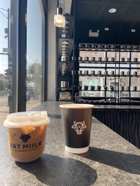 Lan Ho, the owner of Fat Miilk, also feels strongly about spotlighting the relationship between robusta and Vietnamese coffee. She considers the café to be a place where customers are “able to experience Vietnamese coffee in a lot of different ways.” (Block Club Chicago) This philosophy includes both the coffee menu, all of which is derived from the Vietnamese phin brewing method, and the brew lab in the corner, which is visible from both the inside and outside of the shop.
