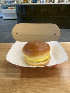 I found that the sandwich had a nice mix of sweet and savory flavor, with the hot honey chili crisp providing a counter-balance to the egg and cheese. The gruyère was melted and warm without being a gooey mess, and the egg patty had both a good thickness to give the sandwich heft and a crispy underside to add a bit of crunch. My only letdown was the brioche bun, which was only lightly treated and probably could have been toasted for longer. I imagine the bacon would add some toasted crispy texture, but I do appreciate that there was an option to keep the sandwich meatless.