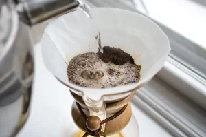 Second is something to set the Chemex on. The glass runs into some risk of breaking if you’re setting it directly on something like a marble countertop. If you’re set on picking up a Chemex, we recommend using a cork or leather coaster. Chemex does make branded versions of these coasters. Plus they include them in their starter kit!